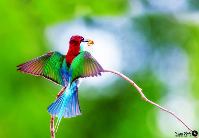 Họ cu rốc gồm những loài chim có bộ lông màu xanh óng ả nhìn rất “mát mắt”. Hãy ngắm những loài chim cu rốc hiện diện tại Việt Nam. Chim cu rốc đầu đỏ dài 22-23 cm, là loài thường phân bổ tại Tây Bắc, Đông Bắc và Bắc Trung Bộ (Vườn Quốc gia Hoàng Liên, Khu bảo tồn thiên nhiên Mường Nhé, dãy núi Tây Côn Lĩnh). Sinh cảnh của loài này là rừng lá rụng thường xanh, rừng thứ sinh, độ cao 400-2.400 m.
