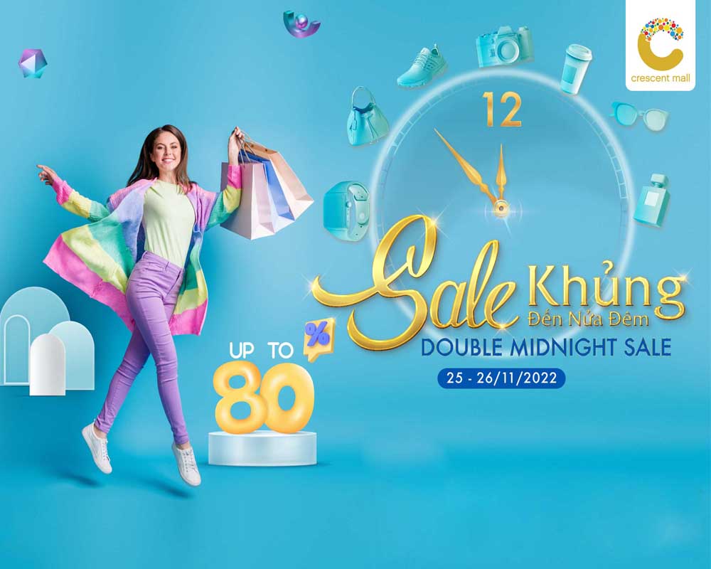 Chương trình Double Midnight Sale của Crescent Mall nằm trong sự kiện Black Fridayvới ưu đãi cực “khủng” lên đến 80%. Chương trình diễn ra trong 2 ngày 25 và 26/11/2022, khách hàng sẽ được thỏa sức mua sắm đến 12h đêm ngay tại Crescent Mall.