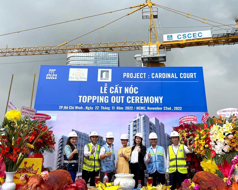 Mới đây, lễ cất nóc dự án căn hộ Cardinal Court đã được tiến hành, thực hiện cất nóc theo đúng tiến độ mà nhà đầu tư Phú Mỹ Hưng đã cam kết với khách hàng. Với tiến độ triển khai hiện tại, dự án sẽ được bàn giao cho khách hàng vào tháng 12/2023.