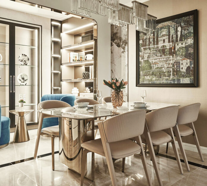 “Luxury Contemporary” nổi bật với việc sử dụng các đồ nội thất làm từ kim loại, mang lại cảm giác quý phái và trang nhã. Ánh sáng được sử dụng một cách thông minh, tạo nên không gian ấm cúng và sang trọng.