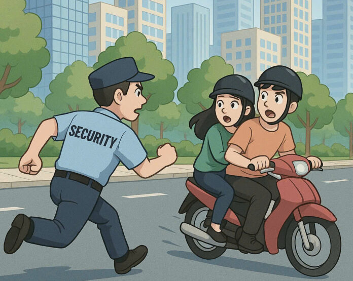 Vào lúc 17:10 ngày 7/6/2025, Bảo vệ Phú Mỹ Hưng phát hiện một nam thanh niên điều khiển xe máy chở theo một phụ nữ đang lưu thông trên đường Nguyễn Lương Bằng (hướng từ đường Nguyễn Đổng Chi về đường Trần Văn Trà). Trước đó, thông tin về chiếc xe này đã được lực lượng Cảnh sát hình sự thông báo đến lực lượng bảo vệ Phú Mỹ Hưng, đề nghị hỗ trợ giám sát vì có liên quan đến một vụ giật đồ xảy ra vào ngày 15/5/2025 tại phường Tân Thuận Tây, Quận 7.